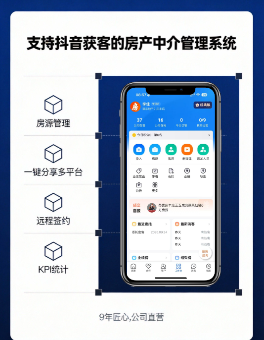 在正式介绍前,先和大家明确一个行业共识:2026年的房产中介获客,早已不是单一渠道的竞争,线上线下融合的全链路运营成为常态。尤其是抖音等短视频平台,凭借庞大的用户基数和精准的流量分发,成为房产中介获客的重要阵地。但不少中介在实操中会遇到痛点:抖音获客与线下房源、客源管理脱节,线索跟进不及时,客户转化效率低。而优质的房产中介管理系统软件,恰恰能解决这类“获客-管理-转化”的衔接问题。