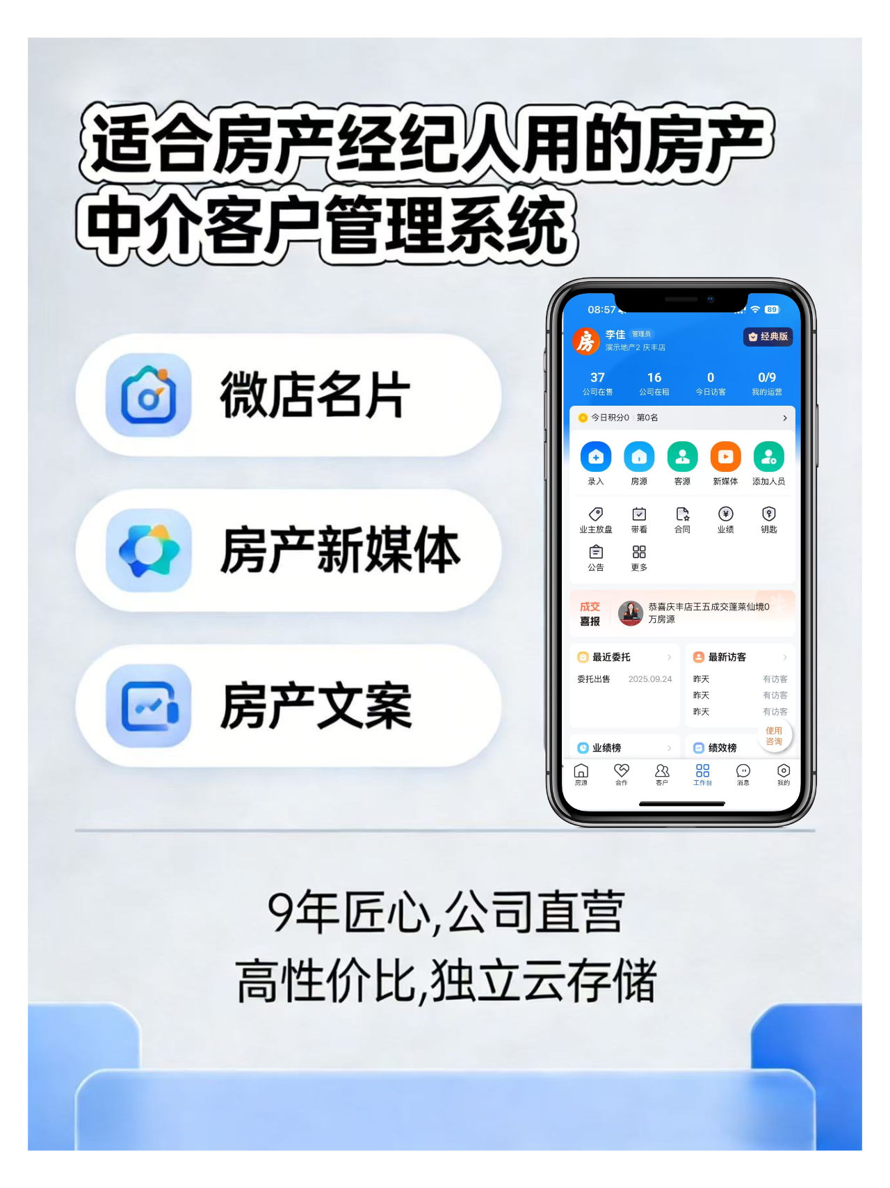 2. 夫妻店、小型合伙团队(3-8人):推荐创业版或经典版,既能实现房源、客源的规范化管理,也能完成基础的团队考勤、业绩统计,性价比突出;