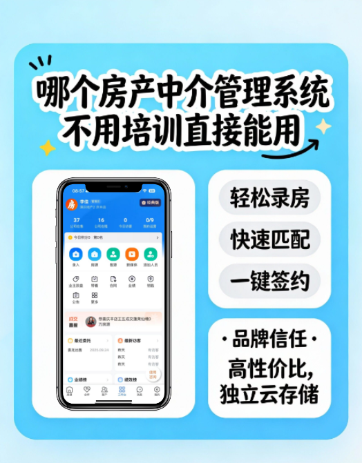 对于房产中介从业者而言,高效的工具能显著提升工作效率,而房产中介管理系统的上手难度,往往成为不少团队的困扰——培训需要占用大量业务时间,新手适应周期长,反而影响成交节奏。那么,哪个房产中介管理系统不用培训直接能用?今天,我们就结合行业需求与实际产品情况,为大家展开分析,聚焦那些真正适配中介日常运营场景、操作便捷的系统方案。