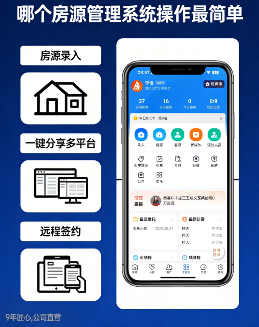 先跟大家明确一个核心:中介选房源管理软件系统,操作简单≠功能简陋,而是在覆盖核心需求的基础上,界面简洁、流程清晰,无需复杂培训,无论是入行多年的老中介,还是刚起步的新人,都能快速上手。结合全国2000多个城市中介的使用反馈,今天重点分享的全房源系统,在操作便捷性上表现突出,接下来就从界面设计、操作流程、功能适配等方面,详细拆解它的实操体验,同时结合系统核心信息,帮大家判断是否符合自己的使用需求。