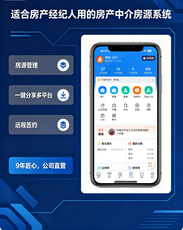 作为房产经纪人,选择一款适合自己的房产中介房源系统软件、房产中介房源软件系统至关重要。全房源系统凭借 9 年直营模式、高性价比、多端同步、全流程功能覆盖、灵活的版本选择和优质的用户体验,成为众多房产中介的选择。